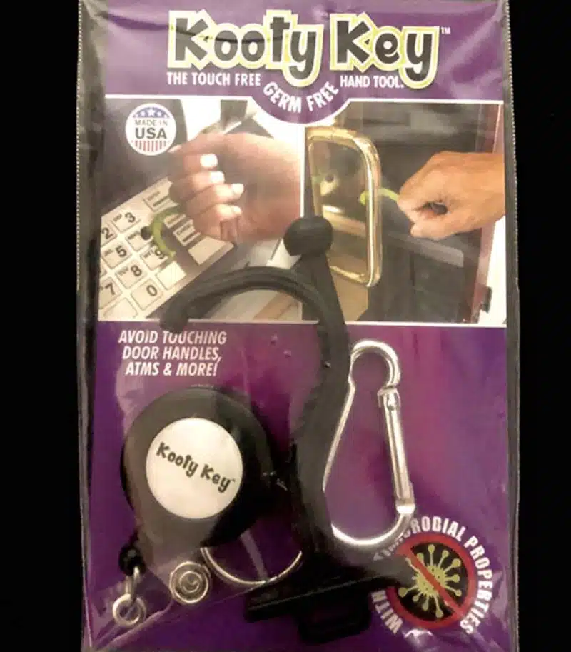 Can’t afford to be sick? Take control of the objects you touch…get an antimicrobial Kooty Key Germ Free Tool to keep the odds in your favor. Virus causing bacteria are all around us. Every door you open, every handle or keypad you touch has a “little something” left on it from the person who touched it before you. Why take chances when the solution is so simple? The Kooty Key is the “Key To Germ Free Living”.