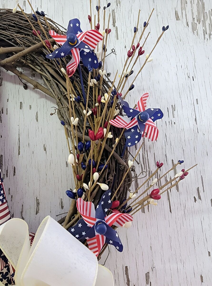 - Embellishments: stars and stripes fabric, patriotic whirligigs,
